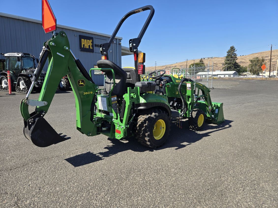 Se ofrece un tractor John Deere modelo 1023E, identificado con el código 025NLV. El equipo proviene de los Estados Unidos y cuenta con manual de operación y mantenimiento en inglés. Se presenta sin cargador frontal y sin retroexcavadora 260, con estación del operador abierta y sin sistema de enganche rápido iMatch. Está equipado con neumáticos 26×12.12 4PR R4 en la parte trasera y 18×8.50-10 4PR R4 en la parte delantera. Además, existe la opción de accesorios: cargador con cubo de 49″ (14A1P) y retroexcavadora con cubo de 12″ (1231LV).