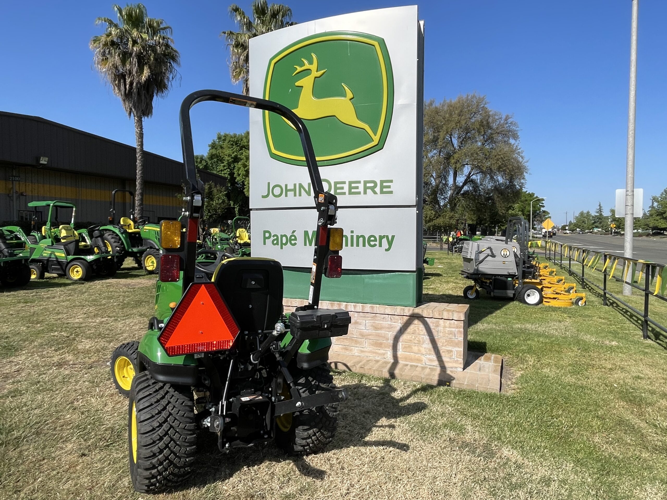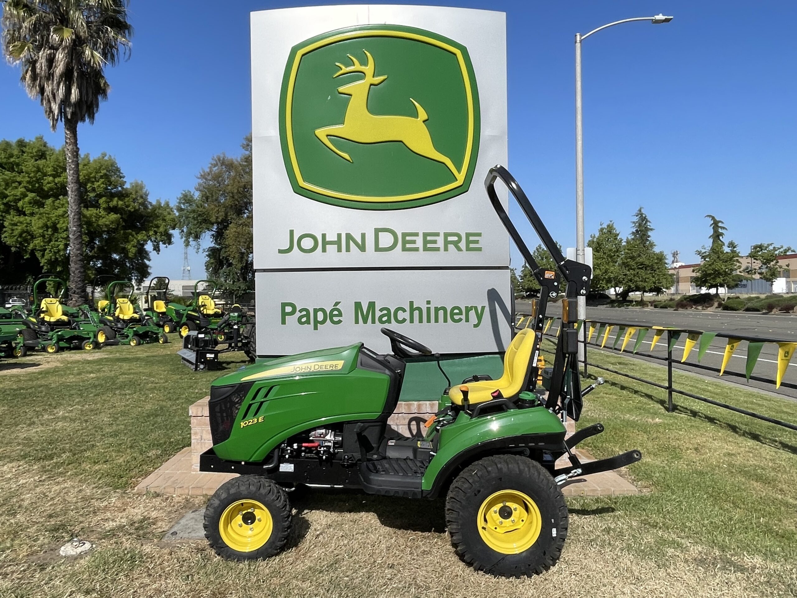Se ofrece un tractor compacto John Deere 1023E, ideal para labores agrícolas y de mantenimiento. Cuenta con estación de operador abierta y neumáticos radiales resistentes (26×12-12 traseros y 18×8.50-10 delanteros) para un buen desempeño en distintos terrenos. Este equipo no incluye cargador, retroexcavadora ni enganche rápido iMatch, y viene con manual de operación y mantenimiento en inglés.