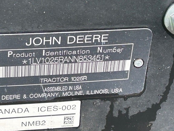 Implemento modelo 54D, identificado con el número de serie 1M02054DHNM062611. Equipo compatible con tractores compactos John Deere, ideal para trabajos de mantenimiento y uso agrícola ligero.