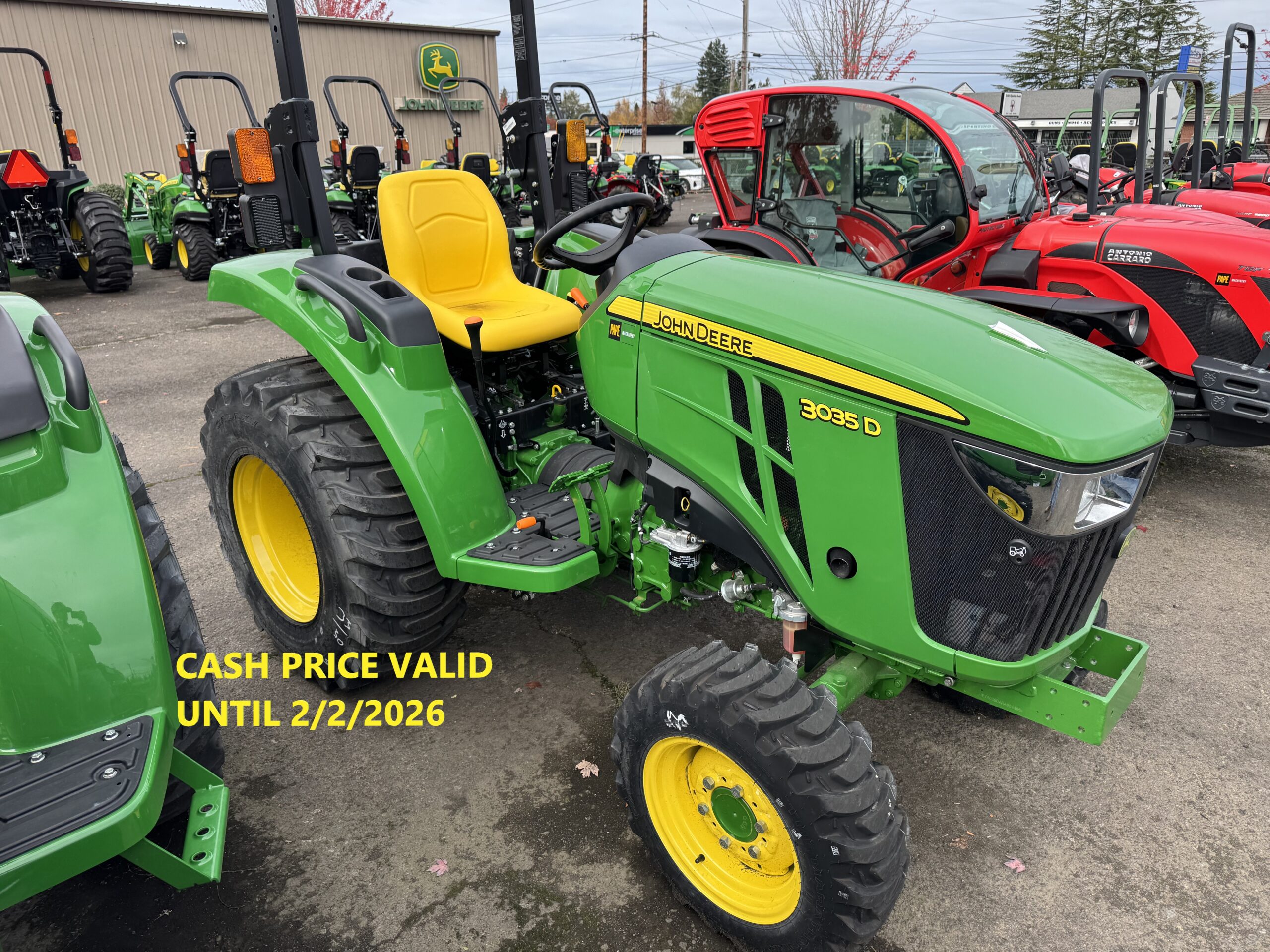 Se ofrece un tractor compacto John Deere 3035D, ideal para trabajos agrícolas y de mantenimiento ligero. Está equipado con barra plana de presión estándar y barra de tiro trasera para mayor versatilidad en el manejo de implementos. Cuenta con neumáticos industriales resistentes (15-19,5 traseros y 25×8.50-14 delanteros), y viene sin cargador ni enganche rápido iMatch. Manual de operador y mantenimiento disponible en inglés.